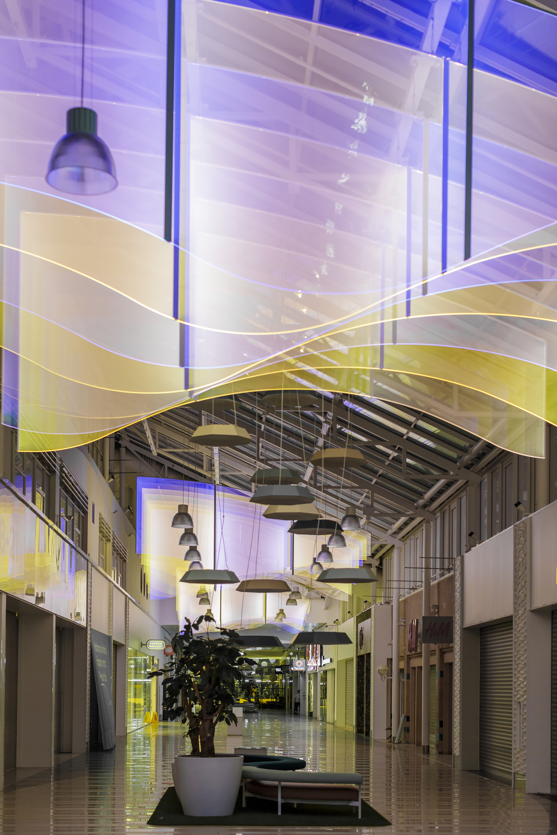 Plexon produserte 35 seksjoner med lys-plater satt sammen til 5 store grupper til et kjøpesenter i syd-Sverige. Etter å ha bygget på senteret med nye flotte lokaler, så ønsket senteret å oppgradere også den gamle delen med noe spektakulært som står i stil til den nye delen.
