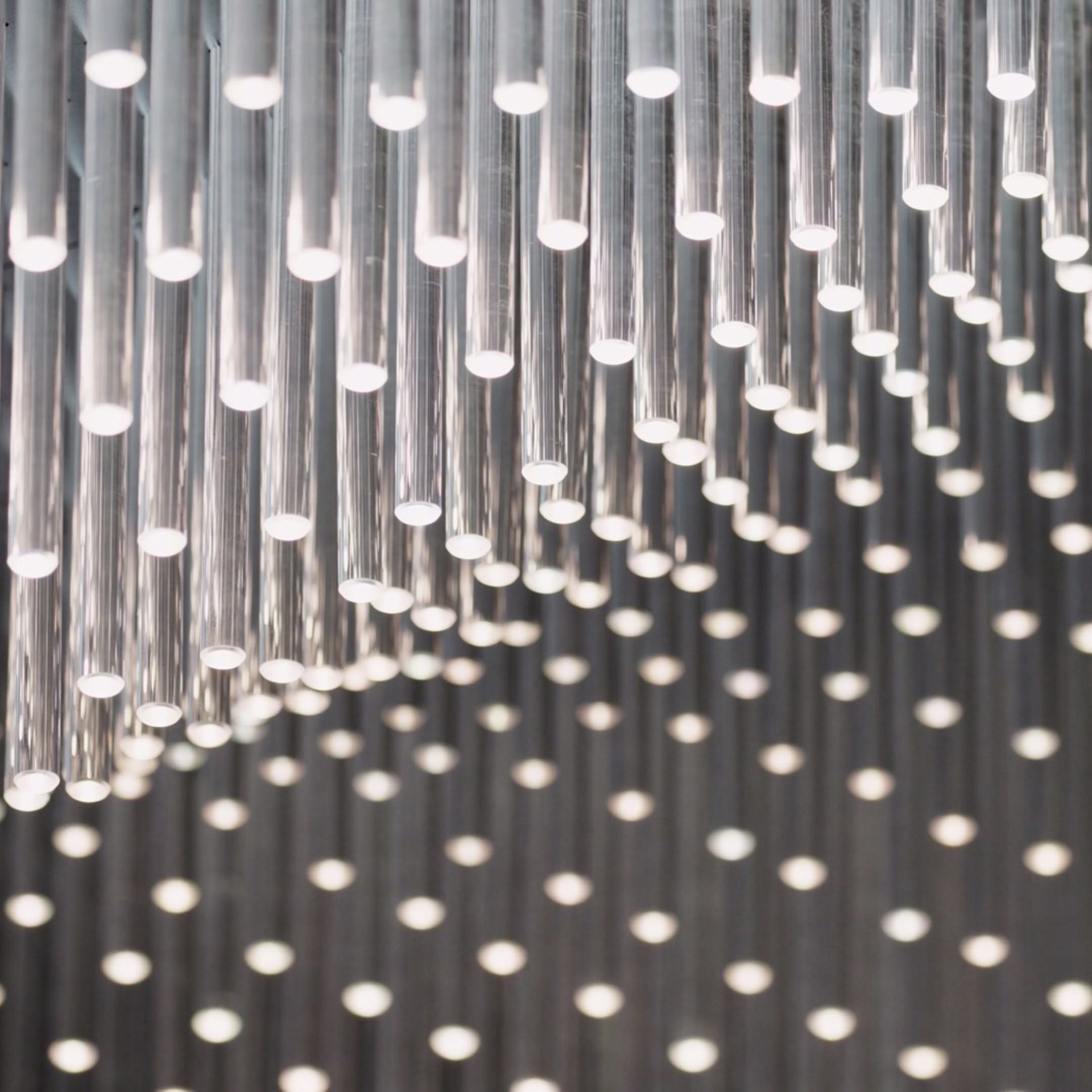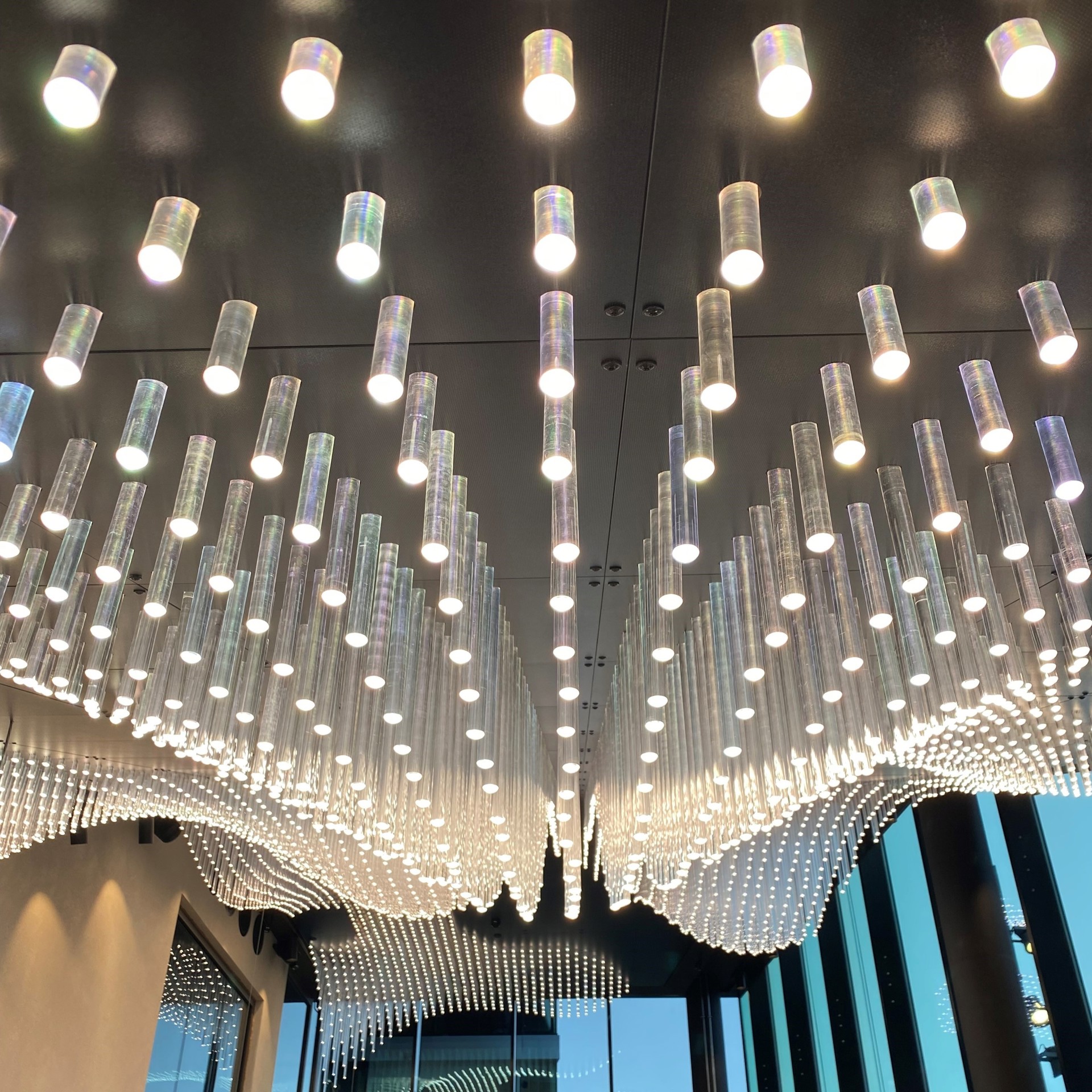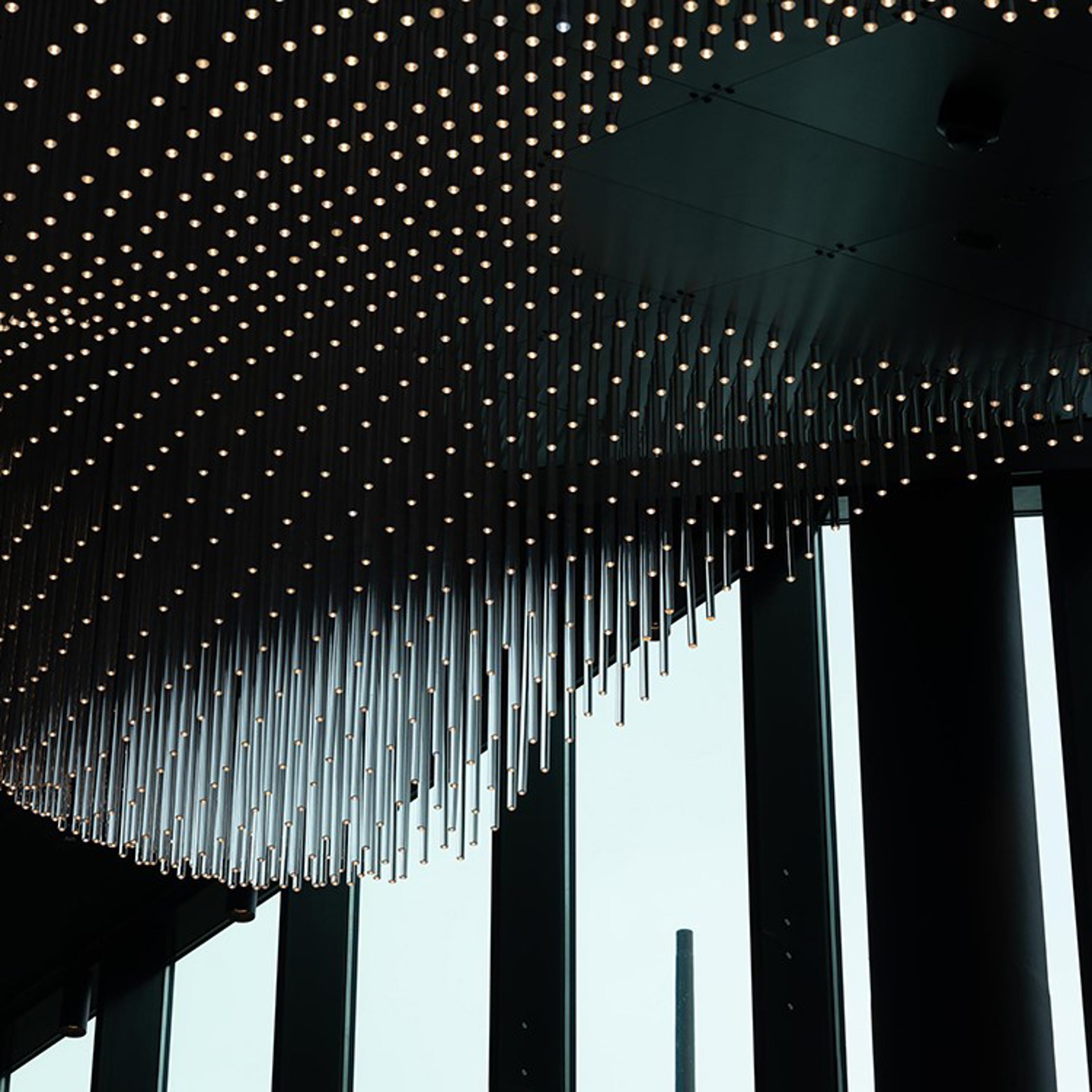 Installasjonen er en inspirerende kobling mellom det fysiske og det digitale. Det leveres høy teknisk kvalitet med en gjennomføring og håndverk i verdensklasse. 3D-sensorer gjør den interaktiv og skaper liv og bevegelse i rommet. Vi vil komme på besøk.