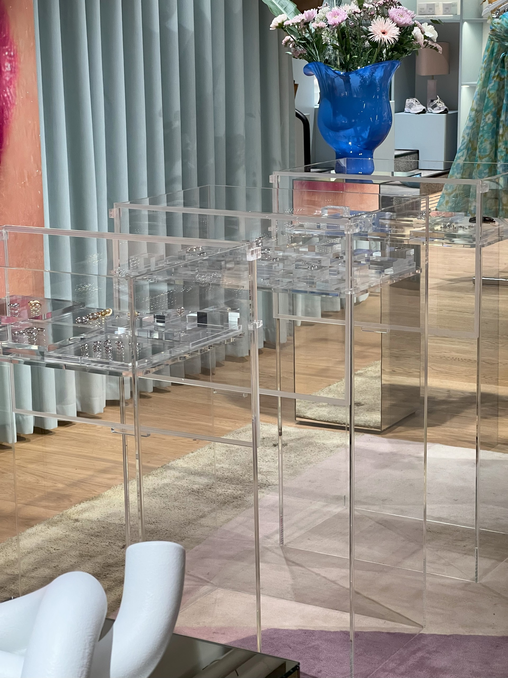 Dette er et godt eksempel på hvor "usynlig" plexiglass som materialet fremstår og hvordan fokus rettes mot det som skal vises frem.