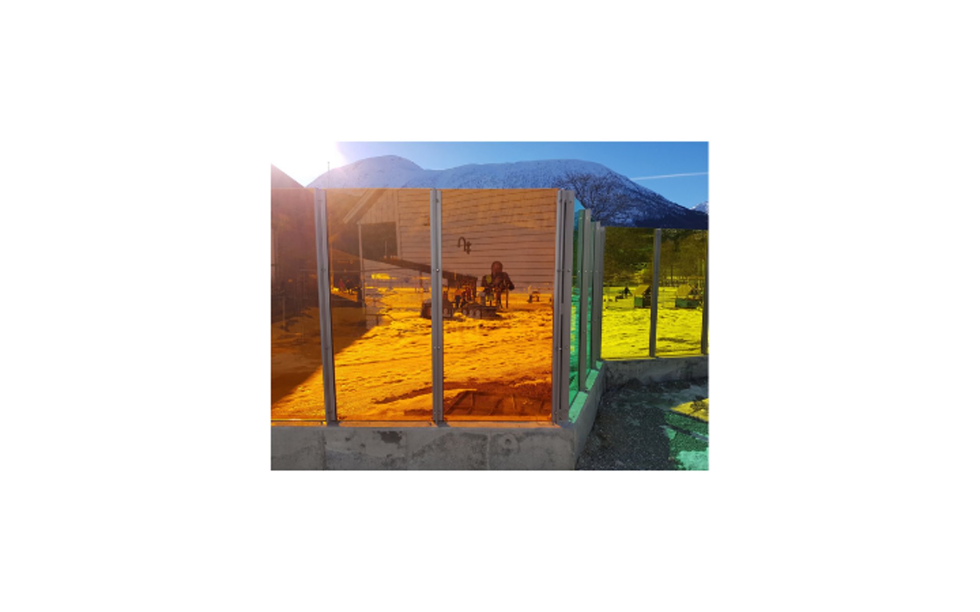 Alle er glade for at den nye støyskjermen er på plass. Trafikkstøyen er mykje mindre til plage no. Vi ser bilane køyre forbi, men vi høyrer lite av dei. Skjermen har fleire fargar, og vi kan sjå gjennom han. Særleg dei varme, fine fargane mot sentrum er veldig fargerike og gir oss godt humør.