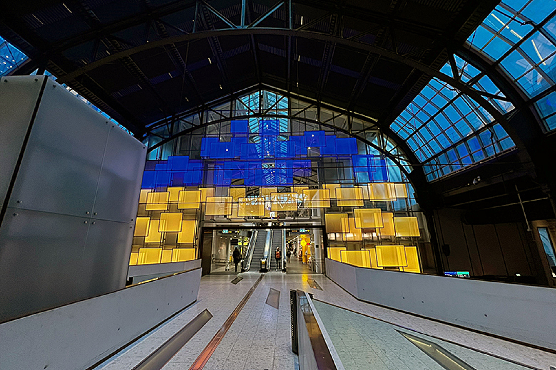 Østbanehallen, et knutepunkt for reisende- og handlende i Oslo. Den spektakulære "lys veggen" har gledet mange besøkende og vunnet flere priser nasjonalt og internasjonalt. Et moderne kunstverk.